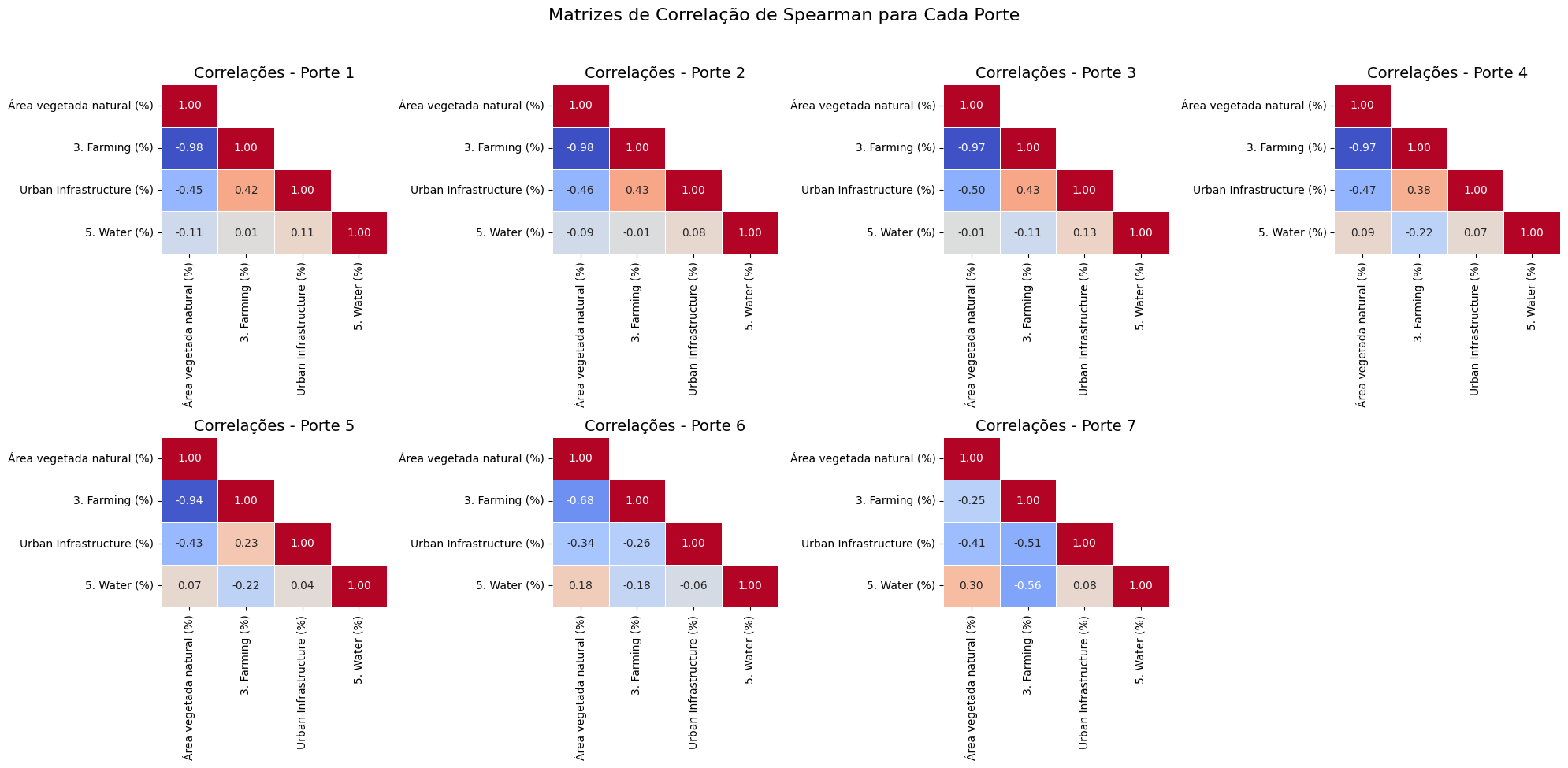 Figura 4: Correlação entre classes de uso do solo por porte.