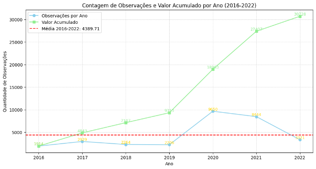 Figura 1: Evolução anual e acumulada do número de decretos de emergência.